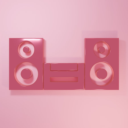 Pink Home stereo with two speaker s icon isolated on pink background. Music system. Minimalism concept. 3D render illustration.