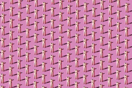 Wooden pegs pattern on pastel pink background. Top view. Minimal abstract fashion concept.