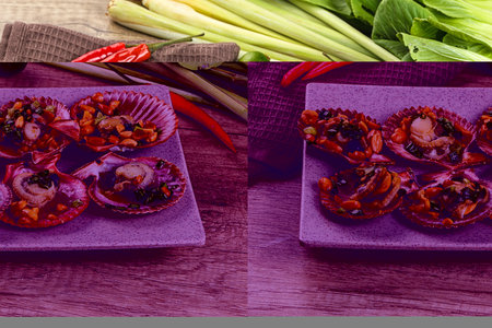 Food photography of fruit jelly with raspberries. Home made food photo for social networks.
