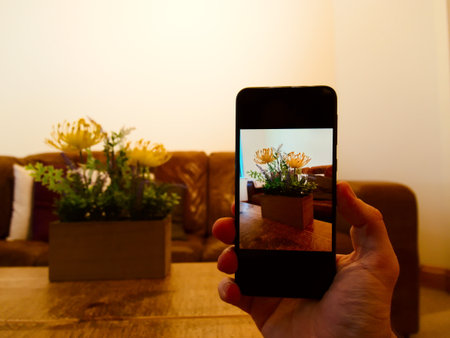 Taking a photo of nature with smart phone in the terrarium.
