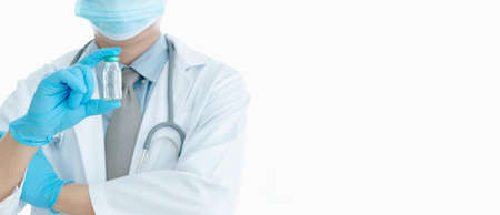 Close up vaccines fight against virus, doctor or scientist in laboratory holding a syringe with liquid vaccines. Concept : diseases,medical care.
