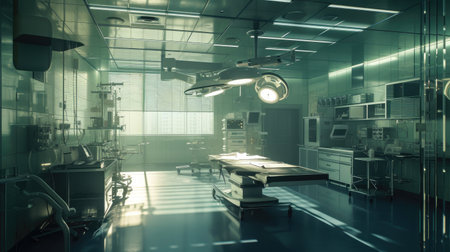 Modern Operating Room with Surgical Equipment and Bright Lighting