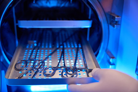 Sterile instruments inside an autoclave highlight the importance of sanitization in medical and healthcare practices