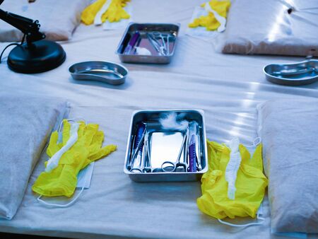 Sterile working tools in a dental doctor's office