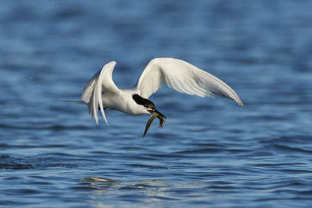 Arctic Tern (Sterna paradisaea) flying , caught a small fish