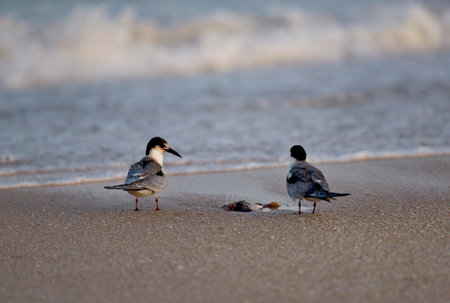 common turns on the beach, showing their natural behavior and habitat, emphasizing the simplicity and beauty of these coastal birds