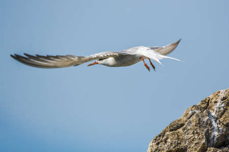 common terns flying in the blue sky
