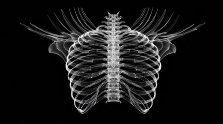 High-resolution X-ray image depicting the chest area, highlighting the rib cage and spinal structure, useful for educational and medical purposes.