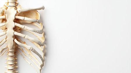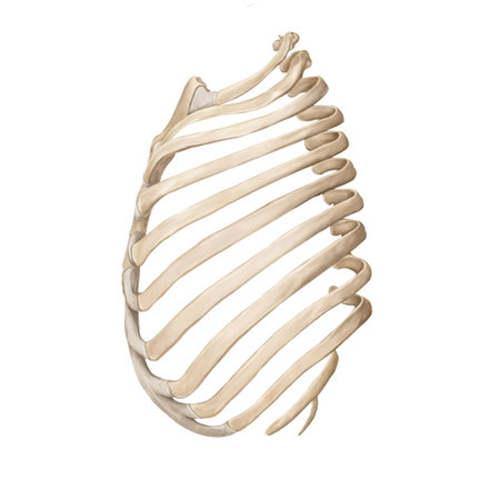 A detailed image of a ribcage bone set against a plain white background, perfect for educational resources and anatomy studies in medical fields.