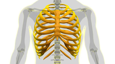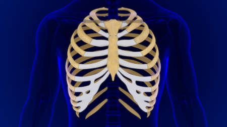 Human skeleton anatomy Costal Cartilage 3D Rendering For Medical Concept