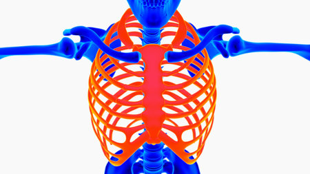Human Skeleton Sternum Bone Anatomy For Medical Concept 3D Illustration