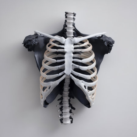 High-resolution anatomical model depicting the rib cage and spine, ideal for medical education, anatomy study, and health science training in a detailed, visually engaging format.