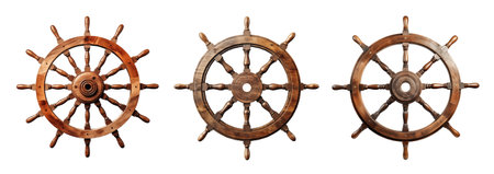 Set of vintage wooden ship rudder on a transparent background