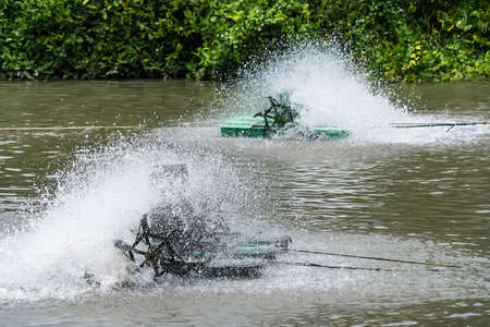 old machine Electric turbine for pump oxygen in water lake