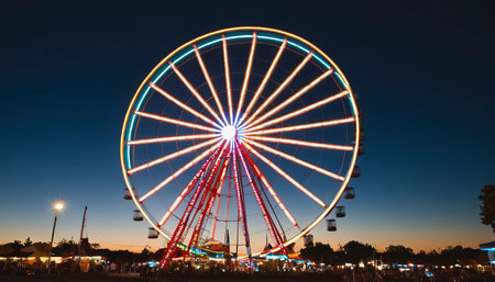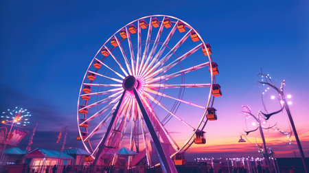 Carnival ferris wheel fun park entertainment. Generative AI