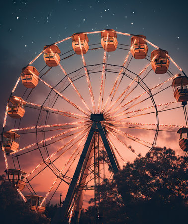 A colorful Ferris wheel against a background of stars.