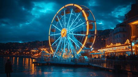 Ferris wheel in the city center of Geneva at night, Switzerland
