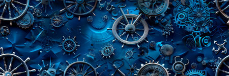 Minimalist pattern with anchors, ship wheels, and compasses, navy blue and white color scheme, Generative AI