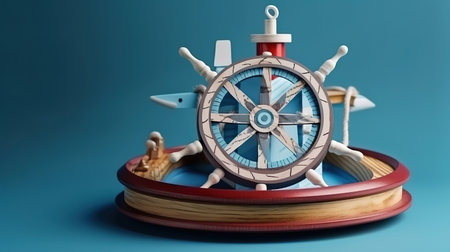 Vibrant Red Nautical Ship Wheel on Glossy Surface with Copyspace for Marine and Sailing Themes AI Generative