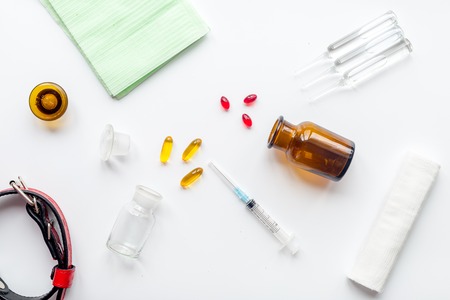 concept pets care treatment on white background top view.