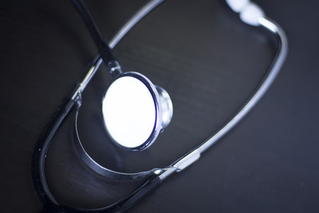 Close up of stethoscope on black table background, Medical instrument - Low key photography