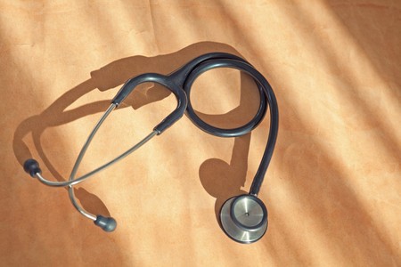Medical doctor's stethoscope used to listen to patient heart rate, beats and monitor irregular heart beats