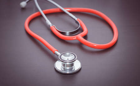 Stethoscope red on table,Healthcare and medical concept,Selective focus