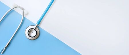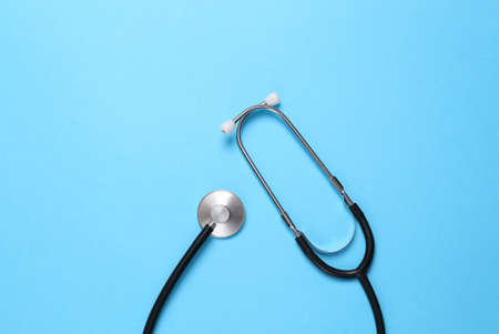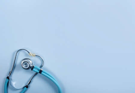 Stethoscope isolated on a blue background with copy space. Health concept.