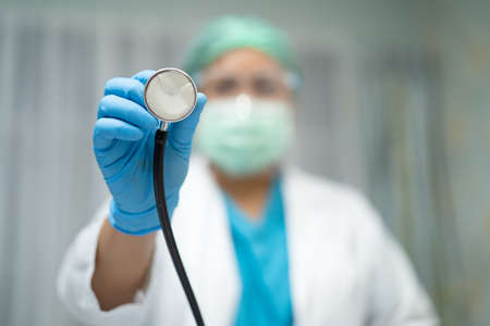 Healthcare and medical concept. Medicine doctor with stethoscope in hand and Patients come to the hospital.