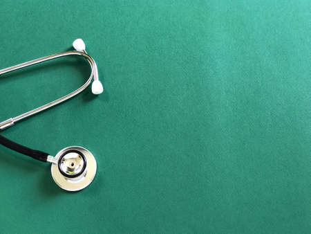 Stethoscope on green background. Top view. Flat lay. Medicine concept.