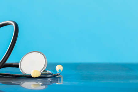 Stethoscope on a blue background. Concept Of Medical And Medical Services