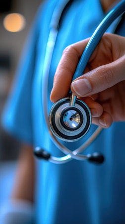 An elegant stethoscope rests on a smooth blue background, symbolizing the vital role of medical professionals in patient care and diagnosis.