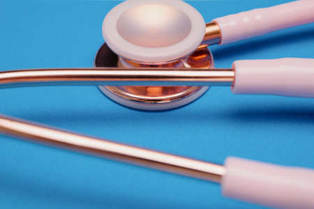 Medical stethoscope.Pink medical stethoscope.The concept of healthcare.Stethoscope on a blue background
