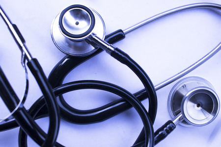 Stethoscope on a white background. Medical equipment. Selective focus.