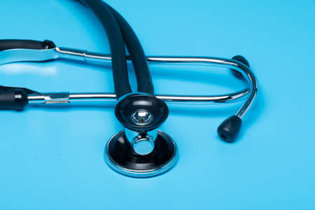 Medical stethoscope. Stethoscope on a blue background close up.