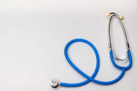 Stethoscope isolated on a blue background with copy space. Health concept.