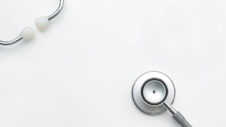 Top view of stethoscope for on white background with copy space.