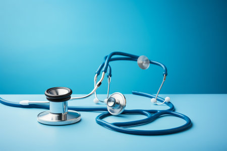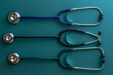 Three stethoscopes are lined up on a blue surface, AI