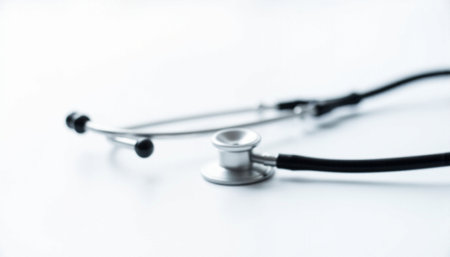 Close-up of a stethoscope placed on a plain background, symbolizing the vital role of this medical tool in patient health assessment and diagnosis.