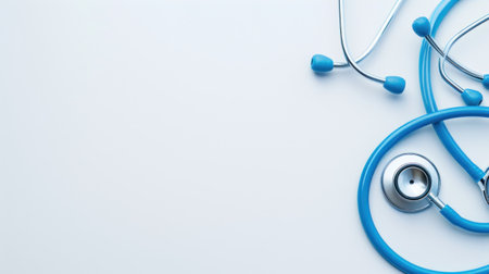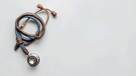 A close-up view of medical equipment including a stethoscope and various accessories, set on a clean white background. Ideal for healthcare-related themes.