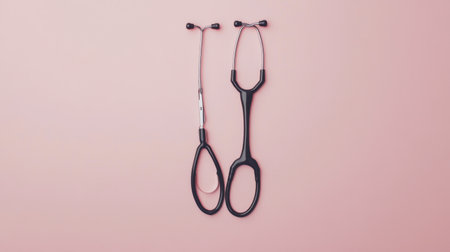 Capture the essence of healthcare with this elegant image of two stethoscopes on a soft pink background, perfect for medical and educational projects.