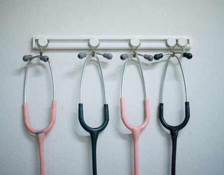Stethoscopes in a row isolated on a white background