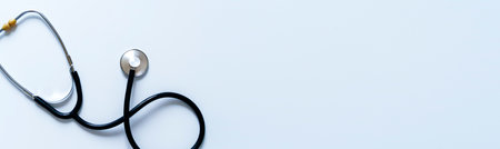 stethoscope partial view with white background, text space