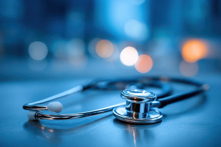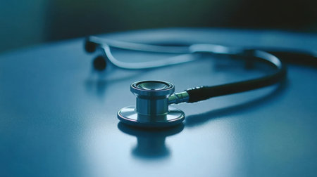 A close-up image capturing a professional stethoscope on a table, evoking themes of healthcare and the medical profession in a soft, blurred background.