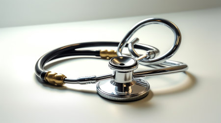 Close-up of a stethoscope placed on a plain background, symbolizing the vital role of this medical tool in patient health assessment and diagnosis.