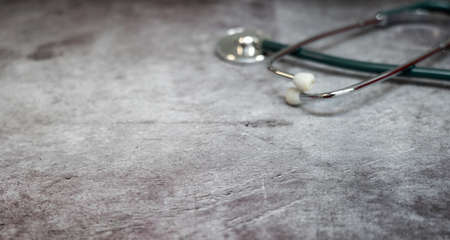 Medical examination and healthcare service concept . Stethoscopes on concrete Surface .