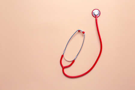 Stethoscope red on table,Healthcare and medical concept,Selective focus
