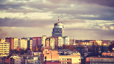 Szczecin City skyline at sunset, color toned picture, Poland.
