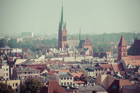 Poznan, Poland - June 28, 2016: View from tower on old and modern buildings or offices in polish city Poznan, Greater Poland province