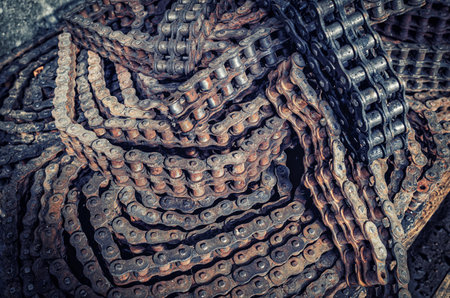 Texture of roller chains background. Rusty old chains, chain gear mechanism
